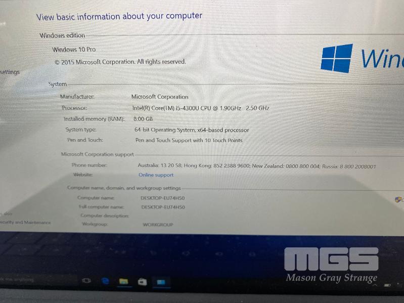 TABLET PC, MICROSOFT SURFACE PRO 3, MODEL 1631, CORE i5 4300U (4TH GEN) @ 1.9GHz, 8GB RAM, 256GB SSD, 12" TOUCHSCREEN, Wi-Fi, WINDOWS 10 PRO INSTALLED, KEYBOARD TYPE COVER & POWER SUPPLY S/N:002753445053