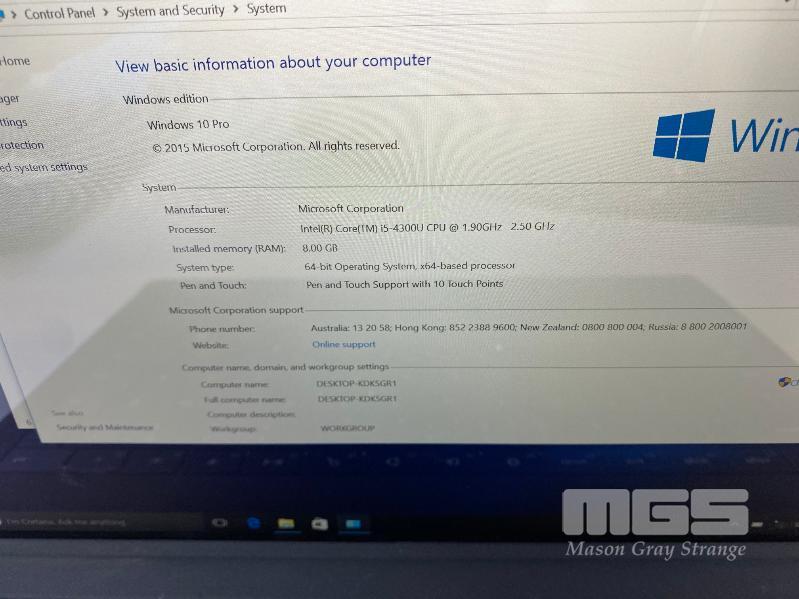TABLET PC, MICROSOFT SURFACE PRO 3, MODEL 1631, CORE i5 4300U (4TH GEN) @ 1.9GHz, 8GB RAM, 256GB SSD, 12" TOUCHSCREEN, Wi-Fi, WINDOWS 10 PRO INSTALLED, KEYBOARD TYPE COVER & POWER SUPPLY S/N:033115145153
