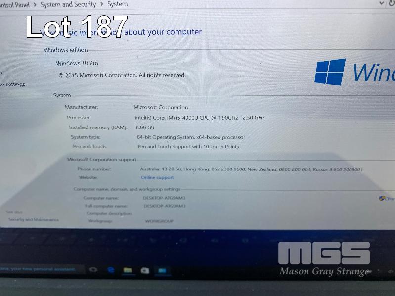 TABLET PC, MICROSOFT SURFACE PRO 3, MODEL 1631, CORE i5 4300U (4TH GEN) @ 1.9GHz, 8GB RAM, 256GB SSD, 12" TOUCHSCREEN, Wi-Fi, WINDOWS 10 PRO INSTALLED, KEYBOARD TYPE COVER & POWER SUPPLY S/N:024544242153