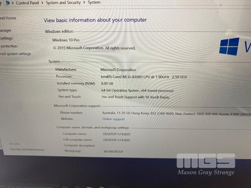 TABLET PC, MICROSOFT SURFACE PRO 3, MODEL 1631, CORE i5 4300U (4TH GEN) @ 1.9GHz, 8GB RAM, 256GB SSD, 12" TOUCHSCREEN, Wi-Fi, WINDOWS 10 PRO INSTALLED & 44W POWER SUPPLY (1800) S/N:045347554753