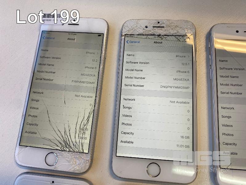 4 x APPLE iPHONE 6, 16GB, SILVER, MODEL A1586 (NOTE: ALL HAVE VARIOUS DAMAGE) (NO CHARGERS, NO CABLES) S/N:F19PVM07G5MP, DNQPWYMMG5MP, DNQPW5RXG5MP, F17PXHGSG5MP 4 x APPLE iPHONE 6, 16GB, SILVER, MODEL A1586 (NOTE: ALL DEAD, WILL NOT CHARGE, WILL NOT POWER ON, iCLOUD LOCK STATUS UNKNOWN, PARTS ONLY) (NO CHARGERS, NO CABLES)