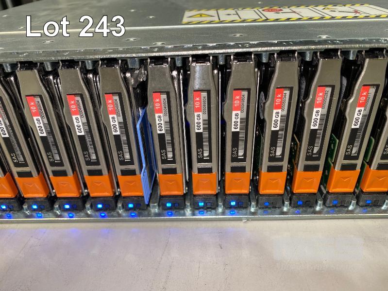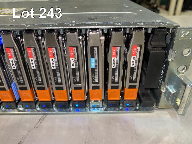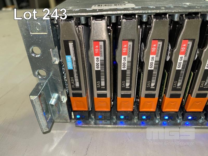 RACKMOUNT STORAGE ARRAY, EMC, MODEL SAE, 046-004-213, 2U, 22 x 600GB SAS HDD, 2 x 200GB FLASH HDD, 2 x SAS CONTROLLERS (303-104-000E), 2 x PSU
