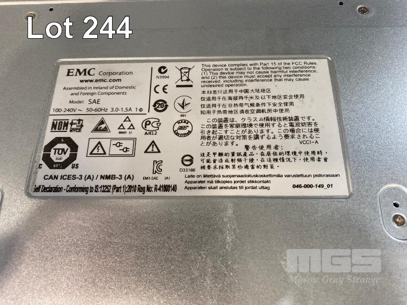RACKMOUNT STORAGE ARRAY, EMC, MODEL SAE, 046-004-213, 2U, 23 x 600GB SAS HDD, 2 x 200GB FLASH HDD, 2 x SAS CONTROLLERS (303-104-000E), 2 x PSU