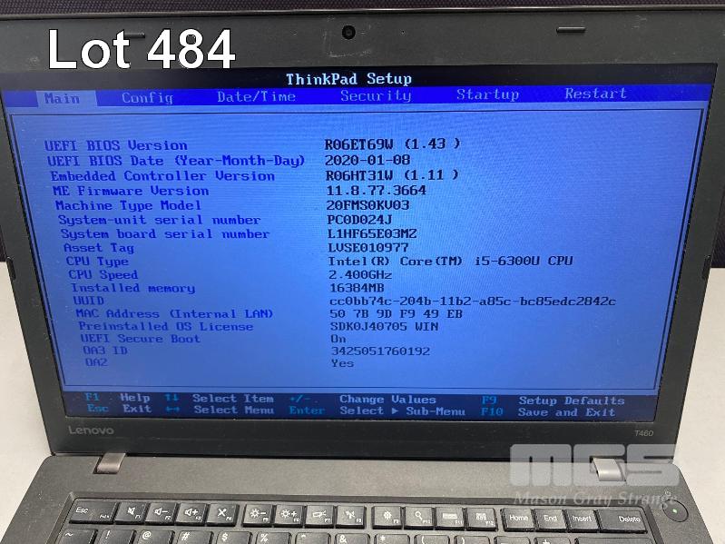 LAPTOP, LENOVO THINKPAD T460 (20FMS0KV03), CORE i5 6300U (6TH GEN) @ 2.4GHz, 16GB DDR3 RAM, 500GB SATA HDD, 14" WIDESCREEN (1366x768), INTEL HD VIDEO, Wi-Fi, BLUETOOTH, WINDOWS 10 PRO INSTALLED & POWER SUPPLY S/N:PC0D024J