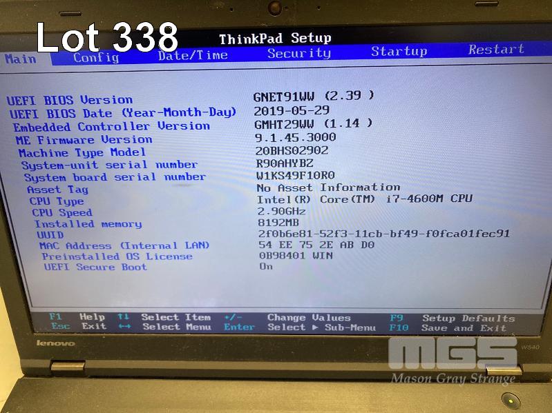 LAPTOP, LENOVO THINKPAD W540 (20BHS02902), CORE i7 4600M (4TH GEN) @ 2.9GHz, 8GB DDR3 RAM, 525GB SSD, DVD-RW, 15.6" WIDESCREEN (1920x1080), INTEL HD VIDEO, 2GB NVIDIA QUADRO K1100M VIDEO, Wi-Fi, BLUETOOTH, WINDOWS 10 PRO INSTALLED & POWER SUPPLY (NOTE: MARKS ON SCREEN, SCREEN BLEMISHES, DAMAGE TO CASING) S/N:R90AHYBZ
