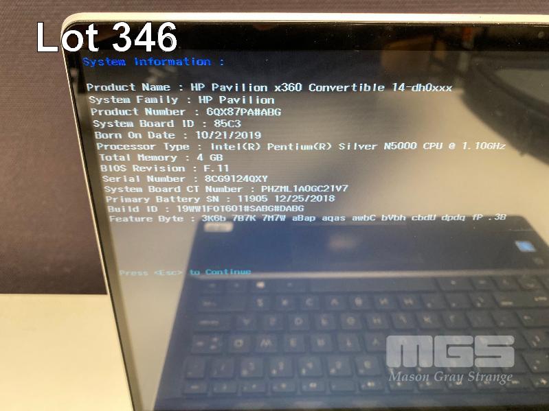 LAPTOP, HP PAVILION x360 CONVERTIBLE (6QX87PA), PENTIUM SILVER N5000 @ 1.1GHz, 4GB RAM, 128GB SSD, 14" TOUCHSCREEN, Wi-Fi, WINDOWS 10 HOME INSTALLED & POWER SUPPLY (NOTE: BIOS PASSWORD PROTECTED) S/N:8CG9124QXY