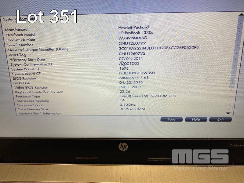 LAPTOP, HP PROBOOK 4330s (LV749PA), CORE i5 2410M (2ND GEN) @ 2.3GHz, 4GB DDR3 RAM, 500GB SATA HDD, DVD-RW, 13.3" WIDESCREEN (1366x768), INTEL HD VIDEO, Wi-Fi, WINDOWS 7 PRO INSTALLED W/ LICENSE & POWER SUPPLY S/N:CNU12607V2