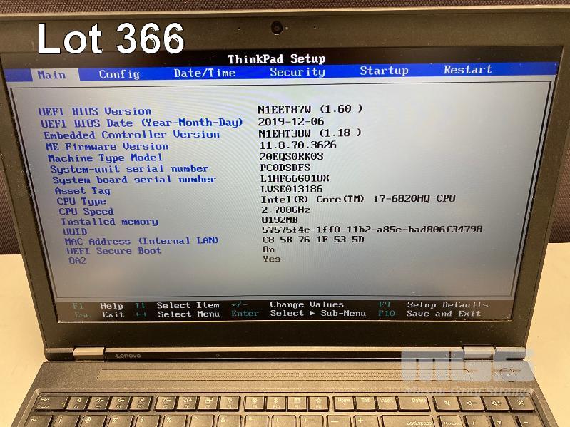 LAPTOP, LENOVO THINKPAD P50 MOBILE WORKSTATION (20EQS0RK0S), CORE i7 6820HQ (6TH GEN) @ 2.7GHz, 8GB DDR4 RAM, 256GB M.2 SSD, 15.6" WIDESCREEN (1920x1080), 4GB NVIDIA QUADRO M2000M VIDEO, Wi-Fi, BLUETOOTH, WINDOWS 10 PRO INSTALLED, DOCKING STATION & POWER SUPPLY (NOTE: KEYBOARD FAULTY, SOME KEYS NOT WORKING) S/N:PC0DSDFS