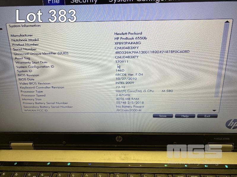 LAPTOP, HP PROBOOK 6550b (XP893PA), CORE i5 M580 @ 2.67GHz, 4GB DDR3 RAM, 250GB SATA HDD, 15.6" WIDESCREEN (1366x768), INTEL HD VIDEO, Wi-Fi, BLUETOOTH, WINDOWS 10 PRO INSTALLED & POWER SUPPLY (NOTE: BATTERY ALERT MESSAGE ON STARTUP, BATTERY NOT CHARGING) S/N:CNU0483XFY