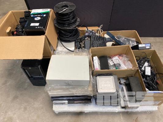 1 x PALLET LOT ASST EMPTY COMPUTER CASES, HP PROLIANT ML350 SERVER (NO HDD), CISCO ROUTERS, MODEMS, POWER ADAPTORS, PART ROLL CABLES ETC