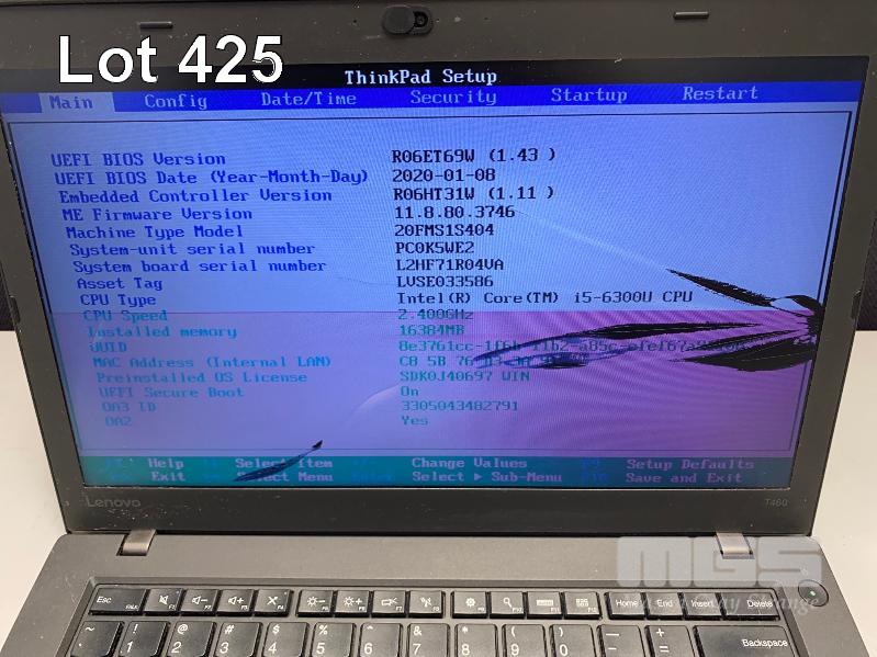 LAPTOP, LENOVO THINKPAD T460 (20FMS1S404), CORE i5 6300U (6TH GEN) @ 2.4GHz, 16GB DDR3 RAM, 250GB SSD, 14" WIDESCREEN & POWER SUPPLY (NOTE: DAMAGED SCREEN) S/N:PC0K5WE2