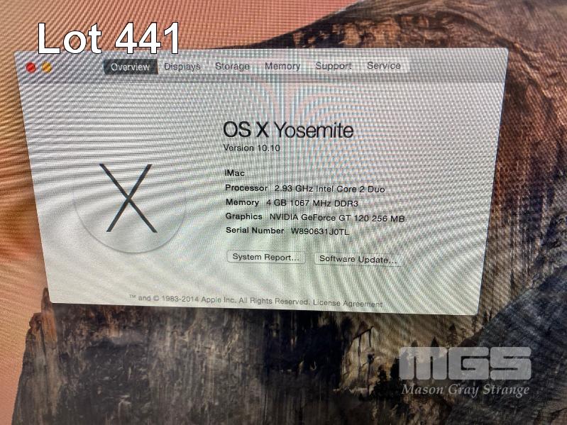 APPLE iMAC (A1225), CORE 2 DUO E8335 @ 2.93GHz, 4GB DDR3 RAM, 2TB SATA HDD, DVD-RW, BUILT-IN 24" DISPLAY, MAC OS 10.10 INSTALLED (NO KEYBOARD, NO MOUSE) (NOTE: MISSING RAM COVER) S/N:W890631J0TL