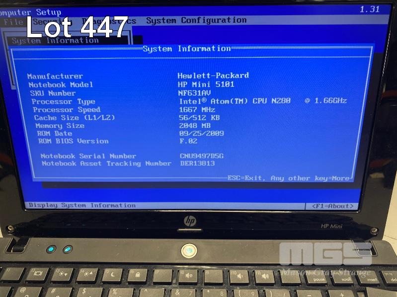 NETBOOK, HP MINI 5101, ATOM N280 @ 1.66GHz, 2GB RAM, 160GB SATA HDD, 10.1" WIDESCREEN, Wi-Fi, WINDOWS 7 PRO INSTALLED & POWER SUPPLY (NOTE: "BACKSPACE" KEY LOOSE) S/N:CNU9497D5G