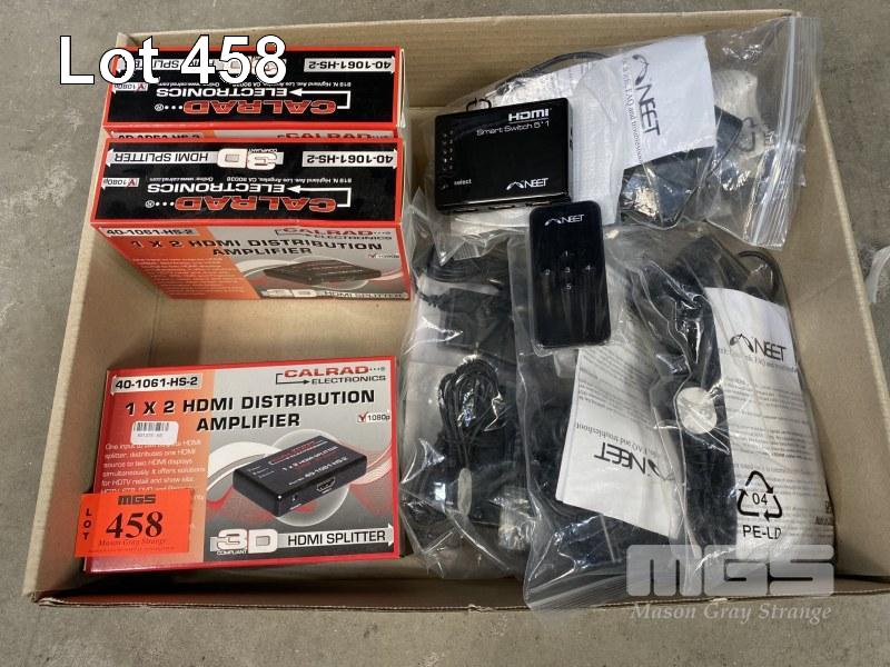 3 x CALRAD ELECTRONICS 1X2 HDMI DISTRIBUTION AMPLIFIERS, 5 x NEET HDMI 5-PORT SMART SWITCHES