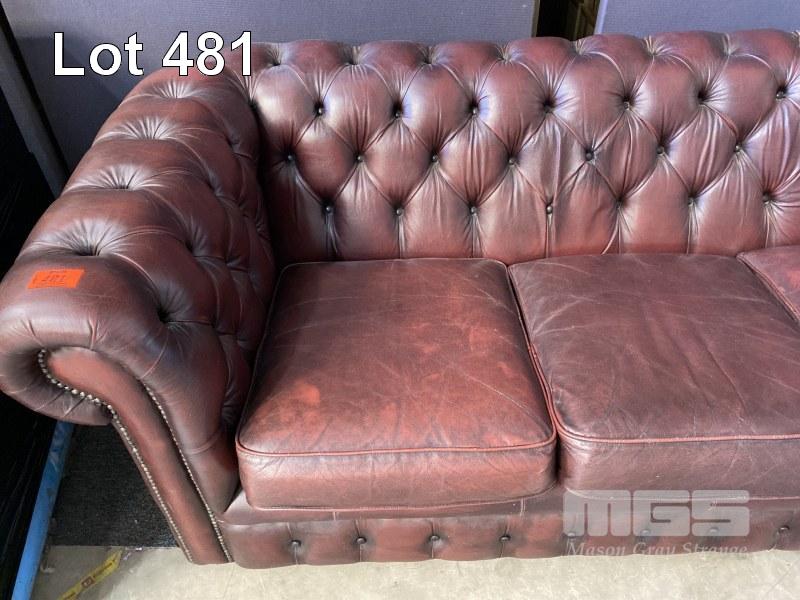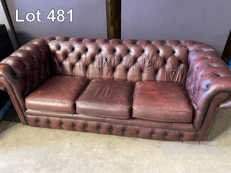 BURGUNDY CHESTERFIELD LOUNGE, 3 SEATER