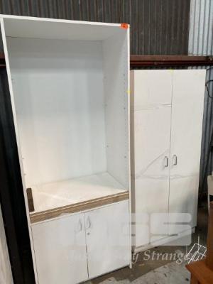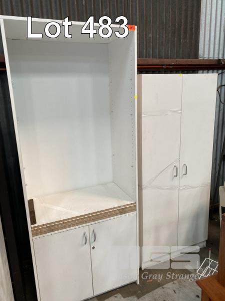 COMBINATION BOOKSHELF & 2 DOOR CUPBOARD, WHITE LAMINATE