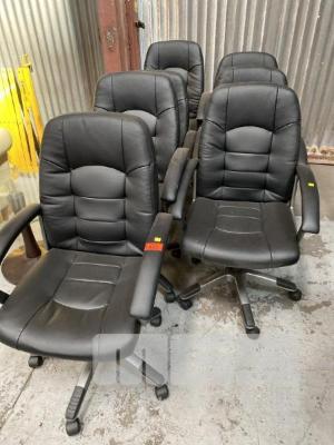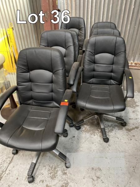 7 X MATCHING OFFICE ARM CHAIRS, BLACK VINYL.