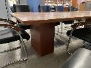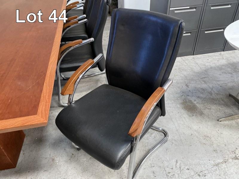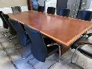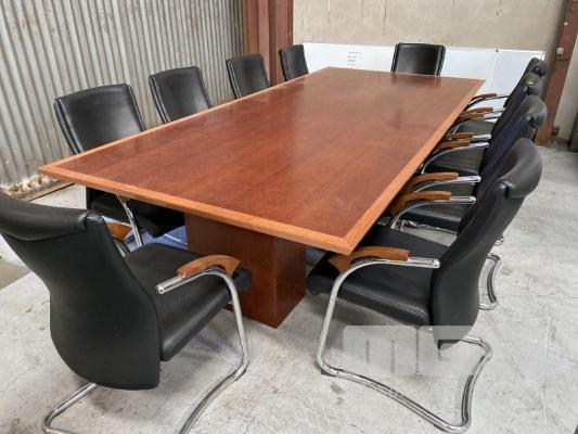 BOARDROOM TABLE, 305 X 142cm, POLISHED TIMBER VENEER, WITH 10 x MATCHING BOARDROOM CHAIRS, BLACK VINYL, CHROME