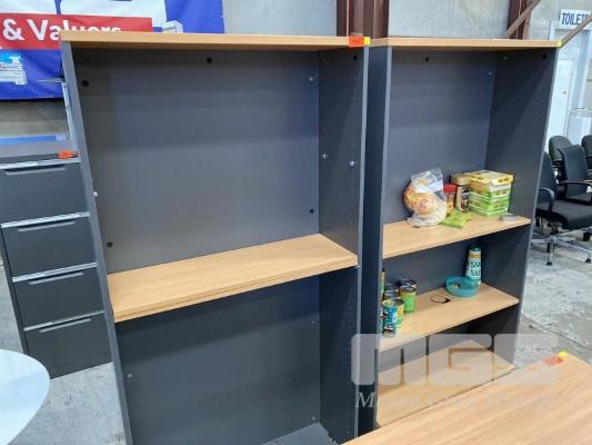 2 x BOOKSHELVES, 180cm, BEECH/CHARCOAL LAMINATE
