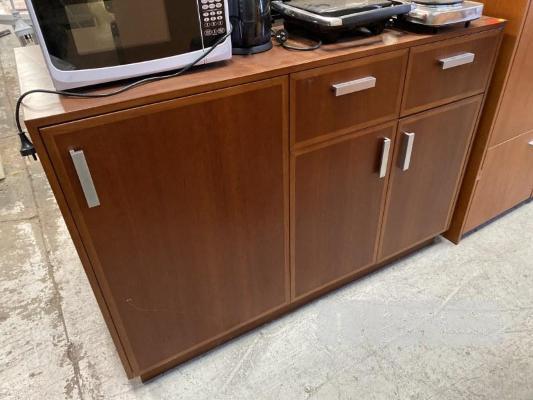 FLOOR CUPBOARD, 150cm, 2 DRAWER/3 DOOR, STAINED TIMBER VENEER