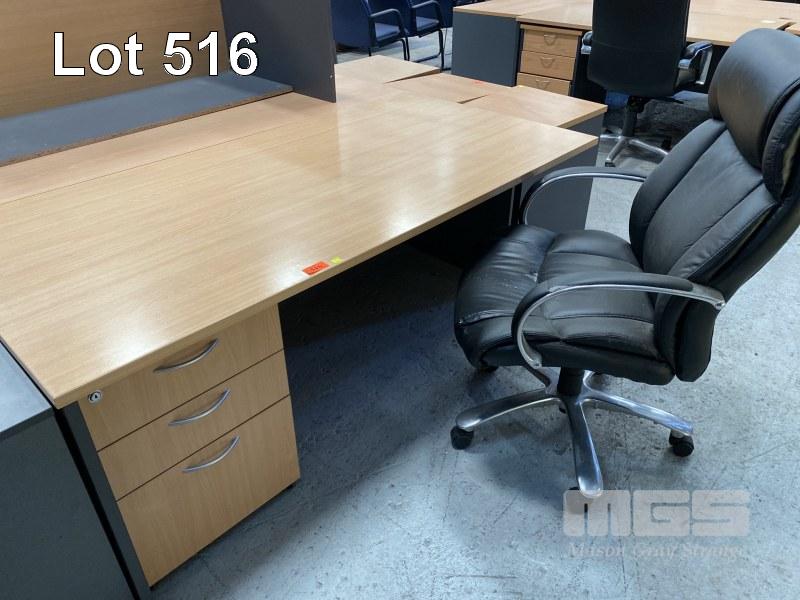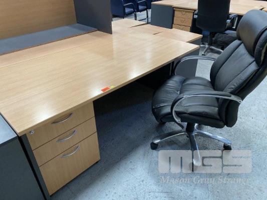 DESK, 176 x 90cm, BEECH/IRONSTONE WITH 3 DRAWER MOBILE & BLACK VINYL ARM CHAIR