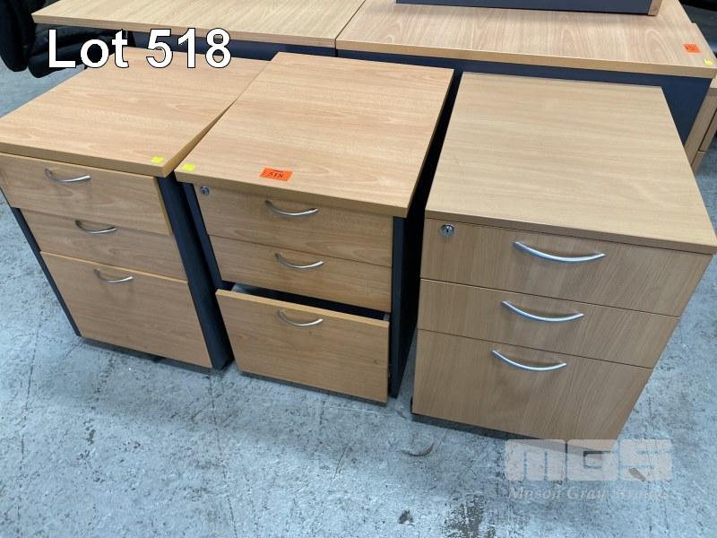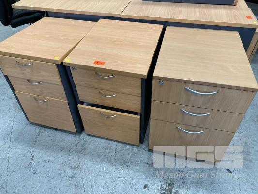 3 x MOBILES, 3 DRAWER, BEECH/CHARCOAL LAMINATE ( DAMAGED CASTORS )