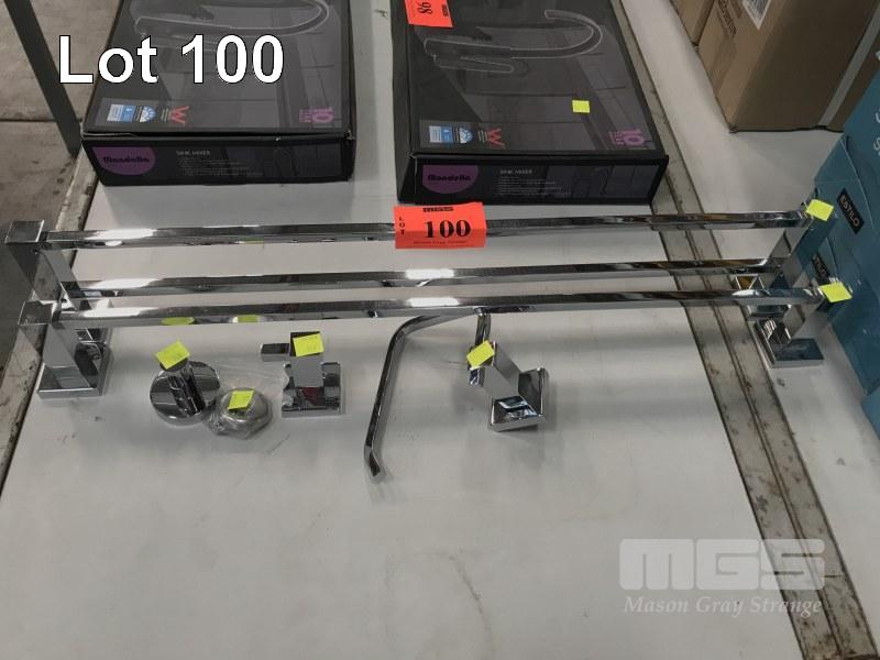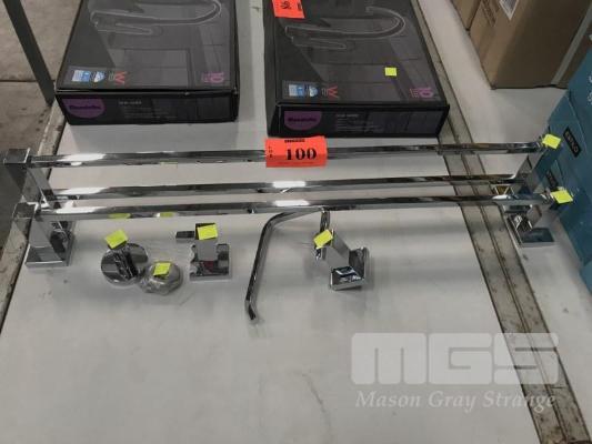 BATHROOM ACCESSORY SET, 2 x TOWEL RAILS, 620mm, ROLL HOLDER & 2 x ASSORTED ROBE HOOKS