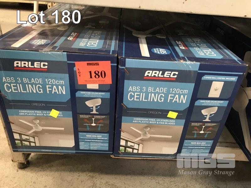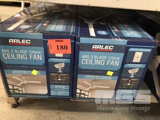 2 x CEILING FANS, ARLEC ABS 3 BLADE, 120cm