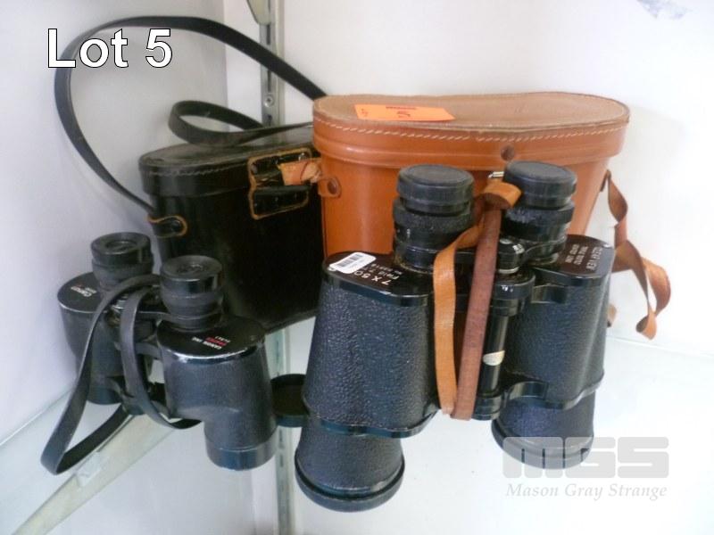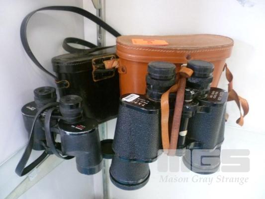 2 x SETS BINOCULARS WITH LEATHER BOUND CASES