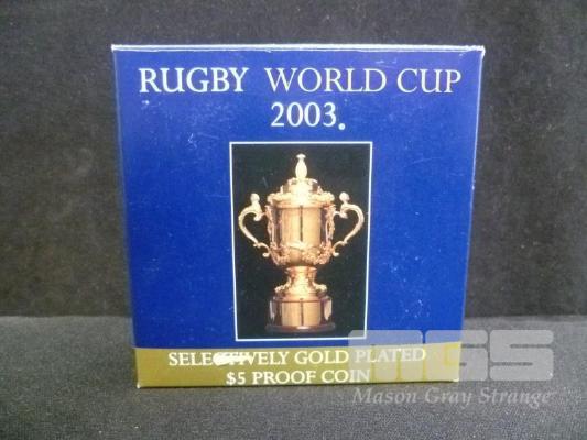 2003 $5 1 TROY OZ "WORLD CUP SELECTIVELY GOLD PLATED" PROOF SILVER COIN