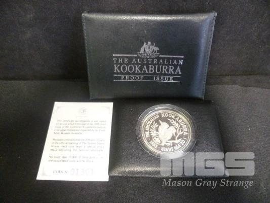 1993 AUST FINE SILVER 1 TROY OZ "KOOKABURRA" UNC COIN, COA 1301 IN WALLET