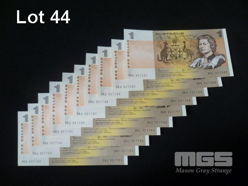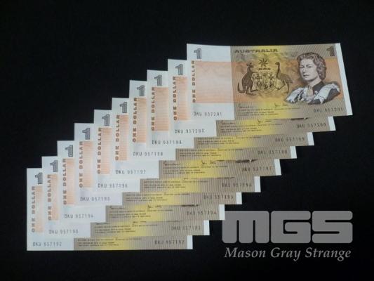 1982 10 x $1.00 NOTES CONSECUTIVE JOHNSTON STONE UNC