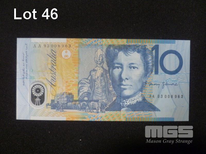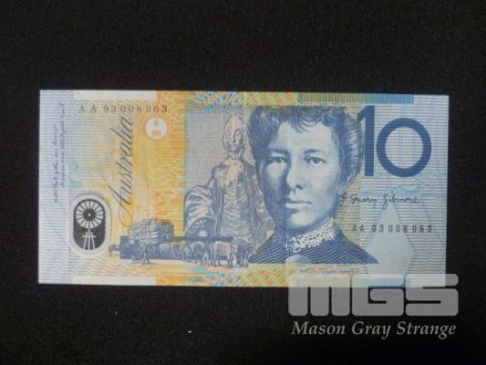 1993 $10.00 1ST PREFIX LOW NUMBER "008963" 1ST NOV 93 OVERPRINT