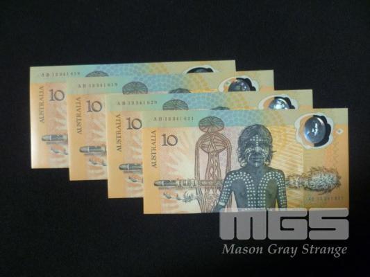 1988 4 x $10.00 NOTE COMMEMORATIVE CONSECUTIVE UNC