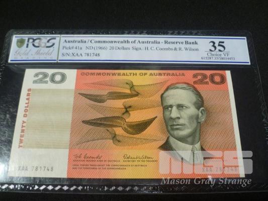 1966 1ST PREFIX 20 DOLLAR NOTE"XAA" PCGS GRADED VF