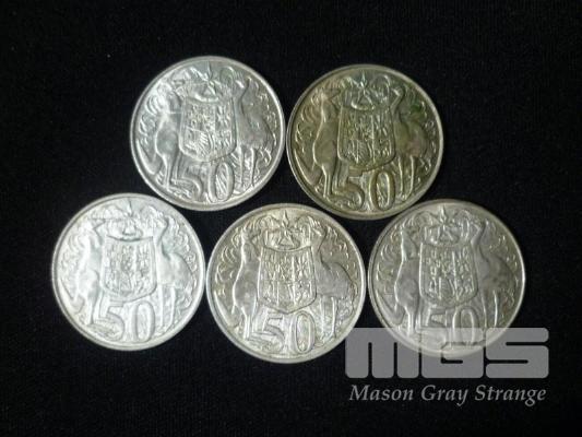 5 X 1966 AUSTRALIAN ROUND 50 CENT PIECES