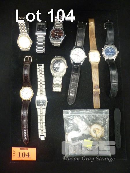 ASSORTED WRIST WATCHES INC LORUS, CITIZEN, OMEGA, NIXON, ETC & BAY OF WATCH PARTS