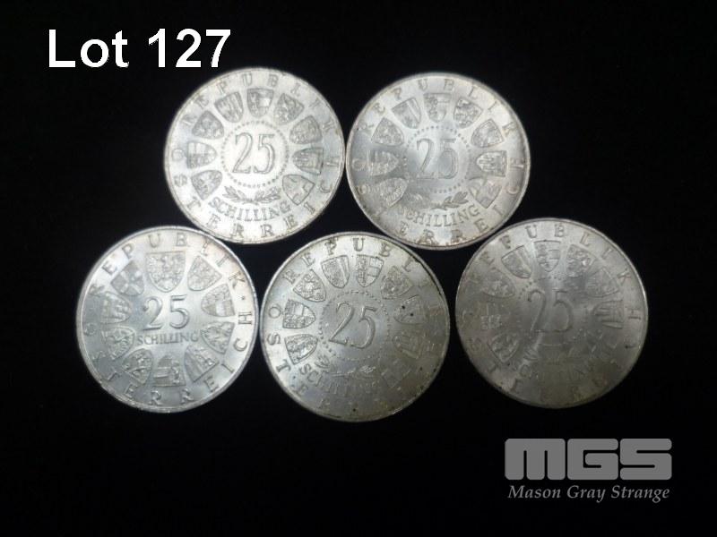 5 X AUSTRIAN 25 SHILLING COINS