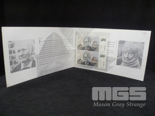 1992 2 x $100.00 NOTE UNCUT PAIR IN FOLDER RED SIGNATURE LOW NUMBER