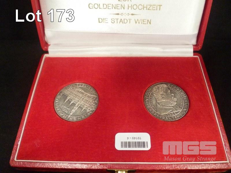 2 X AUSTRIAN 500 SCHILLING, COMMEMORATIVE COINS, 100 JAHRE & 400 JAHRE, IN PRESENTATION BOX