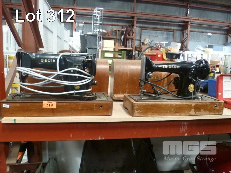 2 x VINTAGE SEWING MACHINES WITH WOODEN COVERS, SINGER SEWING MACH 201K & BRK12S, BOTH MADE IN GREAT BRITAIN
