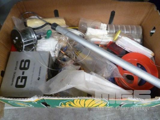PENN, LONG BEACH, SIDE CAST FISHING REEL & ASSORTED FISHING ACCESSORIES