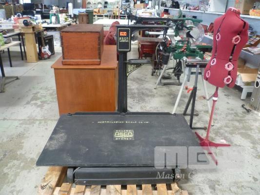 AUSTRALASIAN SCALE CO LTD PLATFORM SCALES POSSIBLY RAILWAY PARCEL OR FARM WOOL BALE APPLICATION ASCO SYDNEY, AUSTRALIAN MADE WITH WEIGHTS