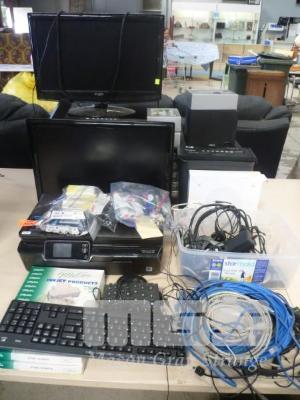 2 x KOGAN 22" LCD TV/DVD COMBOS, (NO REMOTES), 1 x POWER SUPPLY, HP PHOTOSMART 5520, SPEAKERS, MODEM, IT SUNDRIES, ETC