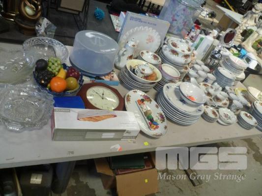 ASSORTED DINNERWARE, GLASS BOWLS, ETC, 1 x TABLE