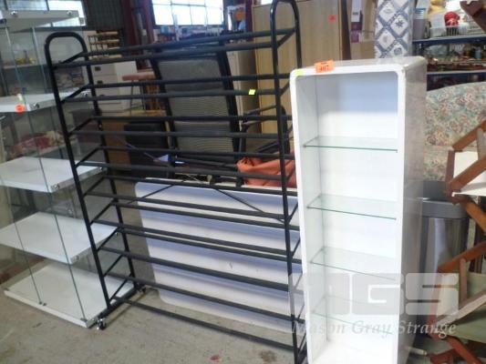 MOBILE SHOE RACK, ROTATING DISPLAY SHELF UNIT, GLASS SHELVES
