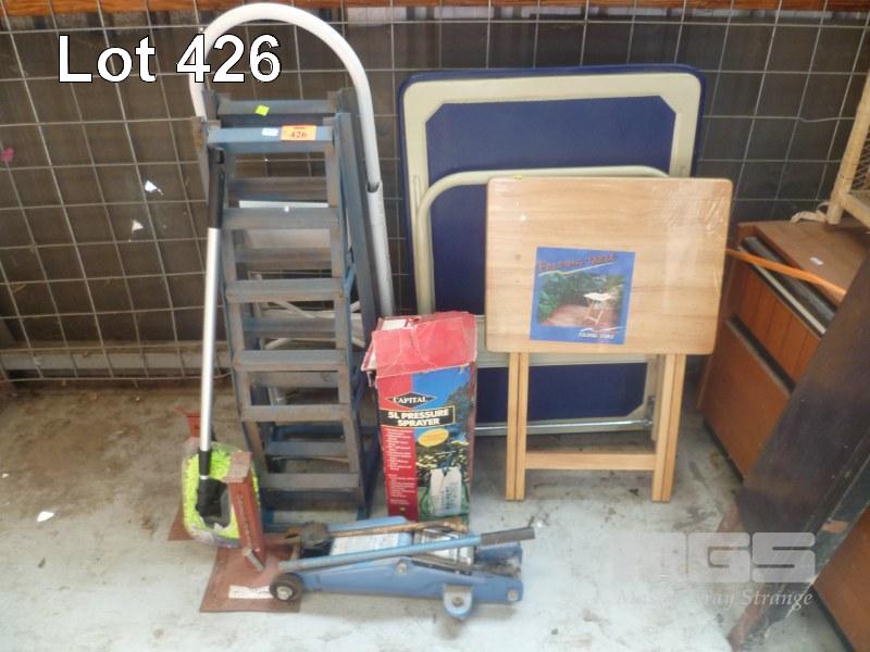 CAR RAMPS, TROLLEY JACK, STEP LADDER, PLATFORM TROLLEY, CAR STANDS, SPRAYER & TABLE