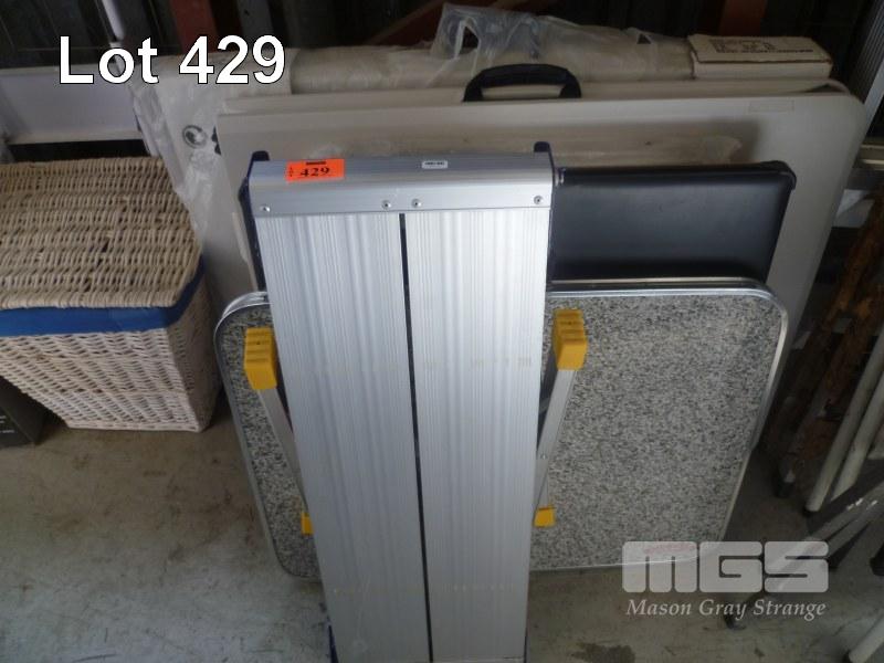2 x TRESTLE TABLES, CARD TABLE, PICNIC TABLES & PLATFORM STAND