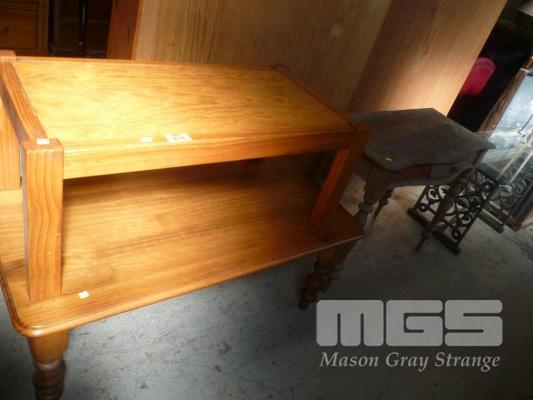 2 x TIMBER RECTANGULAR COFFEE TABLES & HALL TABLE