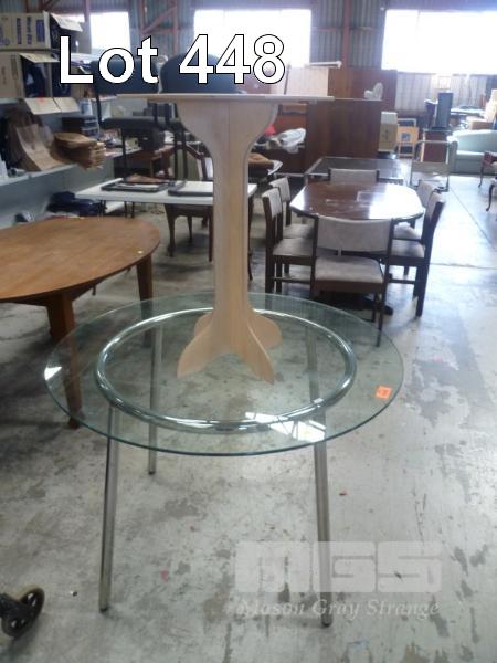 ROUND DINING TABLE, GLASS TOP, CHROME FRAME WITH MDF OCCASIONAL TABLE